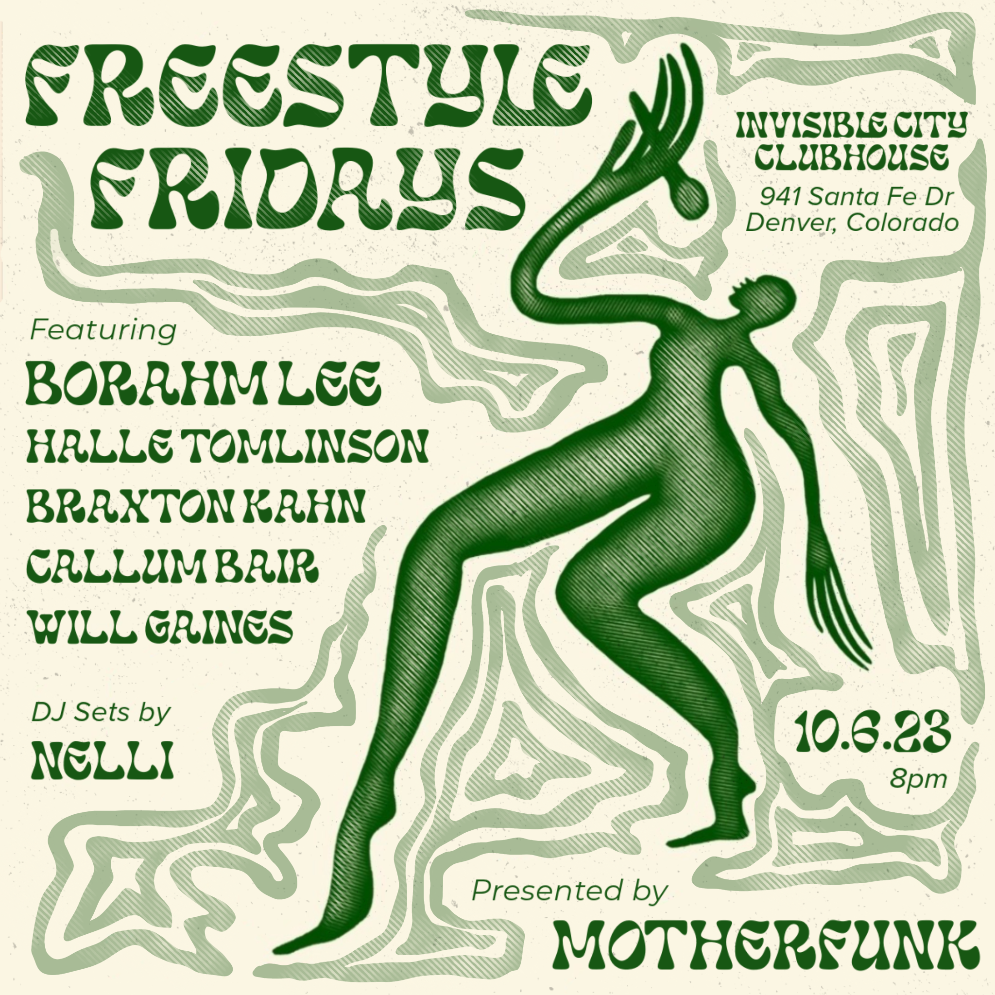 Motherfunk presents Freestyle Fridays- an evening of melding musical talent, celebrating art, and enjoying community. Hosted at the enchanting Invisible City Clubhouse, Freestyle Fridays is the ultimate way to cap off the iconic Santa Fe First Friday art walk. Come join us at 8pm for cocktails, and live music begins at 9:30pm.